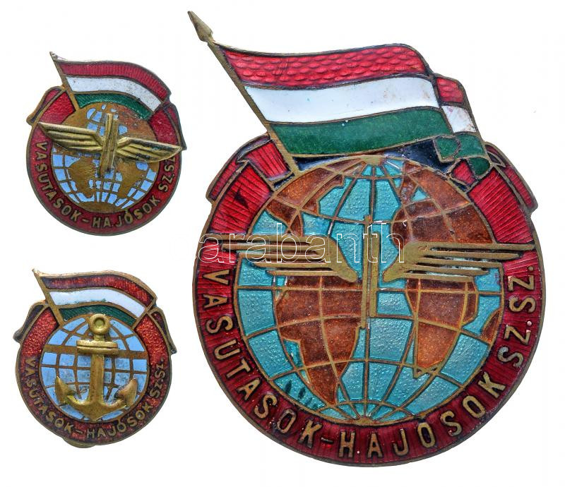 ~1960. "Vasutasok-Hajósok Szakszervezete" 3xklf zománcozott fém jelvén...