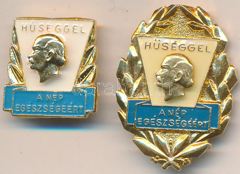 DN "Hűséggel a nép egészségéért" arany és bronz fokozat, zománcozott kitüntetések plasztik tokban T:1,2