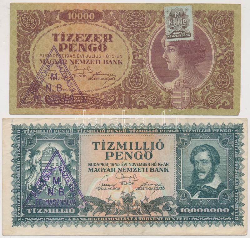 https://www.darabanth.com/en/210-Online-auction/210.0/Numismatics/Hungarian-Banknotes~99/1945-10000P-plus-100000P-plus-10000000P-plus-1946-100000000MP-plus-1000000000MP-mindegyik-MNB-REV~II864426