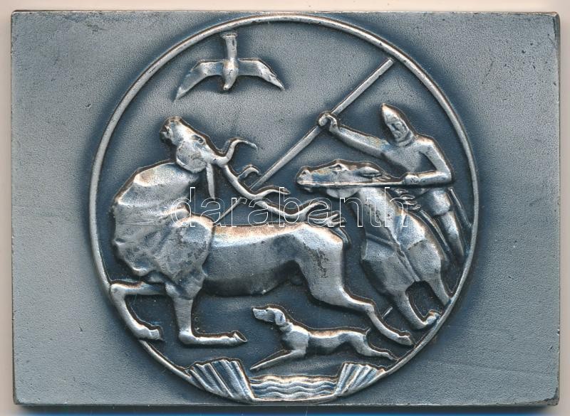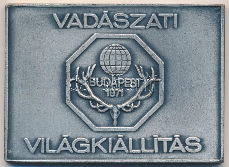 Olcsai Kiss Zoltán (1895-1981) 1971. "Vadászati Világkiállítás Budapest" ezüstözött Br plakett dísztokban (50x70mm) T:2