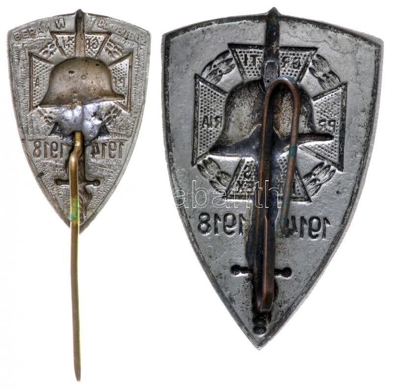 Hungary 1914-1918. "Hungarian Front Fighters Association" tombac badge and miniature badge, sign.: Nándor Berán C:XF