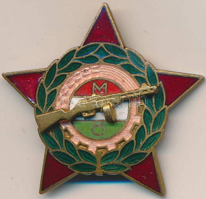 1964. Munkásőr kitüntetés mellszalaggal, szalagsávval és miniatűrrel dísztokban + ~1960. Munkásőr szolgálati zománcozott aranyozott jelvény