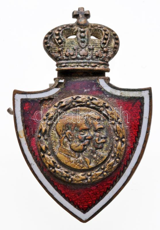 Description: Osztrák-Magyar Monarchia / Német Birodalom ~1915. "I. Ferenc József és II. Vilmos" zománcozott fém patrióta jelvény korona díszítménnyel (40x25mm) T:2-