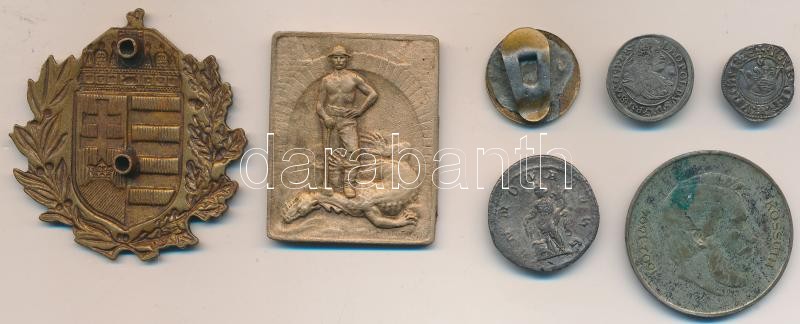 7db-os vegyes tétel közte ezüst pénzekkel, jelvényekkel és plakettel T:vegyes