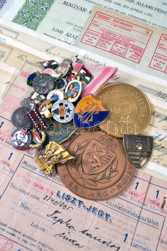 https://www.darabanth.com/en/210-Online-auction/210.0/Numismatics/Mixed-banknote-and-coin-lots~110/Vegyes-numizmatika-tetel-kituzokkel-emlekermekkel-penztarjegyekkel-liszt-es-cukorjegyek~II864936