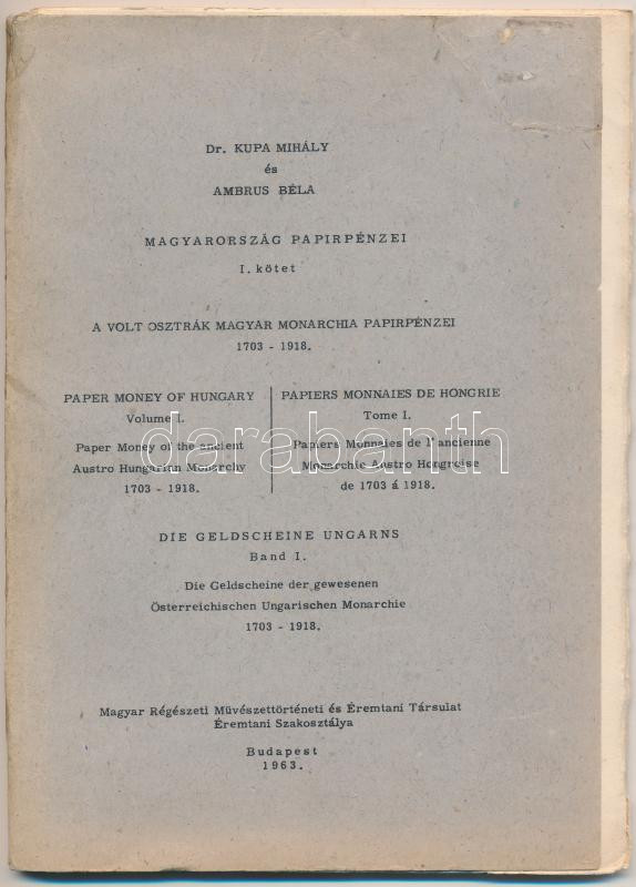 Dr. Kupa Mihály - Ambrus Béla: Magyarország papírpénzei I-II. kötet. B... https://www.darabanth.com/en/210-Online-auction/210.0/Numismatics/Numismatics-Literature~94/Dr-Kupa-Mihaly--Ambrus-Bela-Magyarorszag-papirpenzei-I-II-kotet-Budapest-Magyar-Regesz~II867108