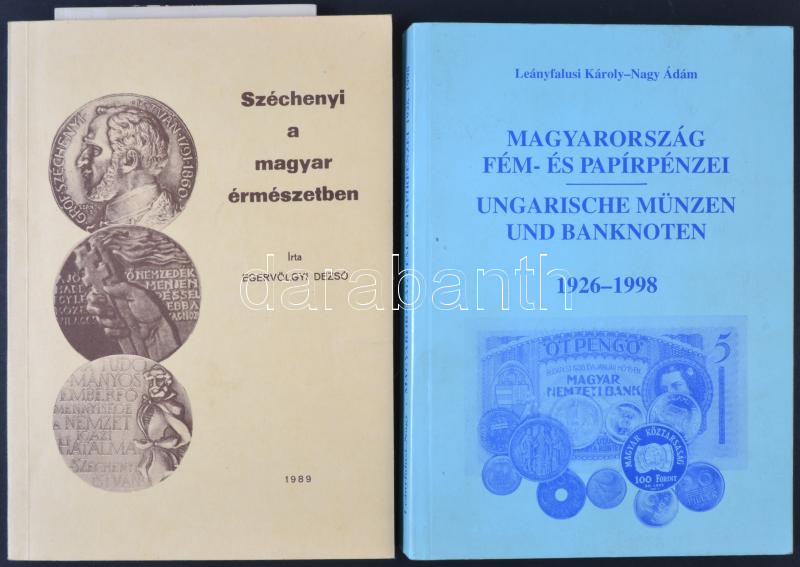 Description: Leányfalusi Károly - Nagy Ádám: Magyarország fém- és papírpénzei 1926-1998, Budapest, MÉE, 1999. + Egervölgyi Dezső: Széchenyi a magyar érmészetben, Pannon Ate, Keszthely, 1989.