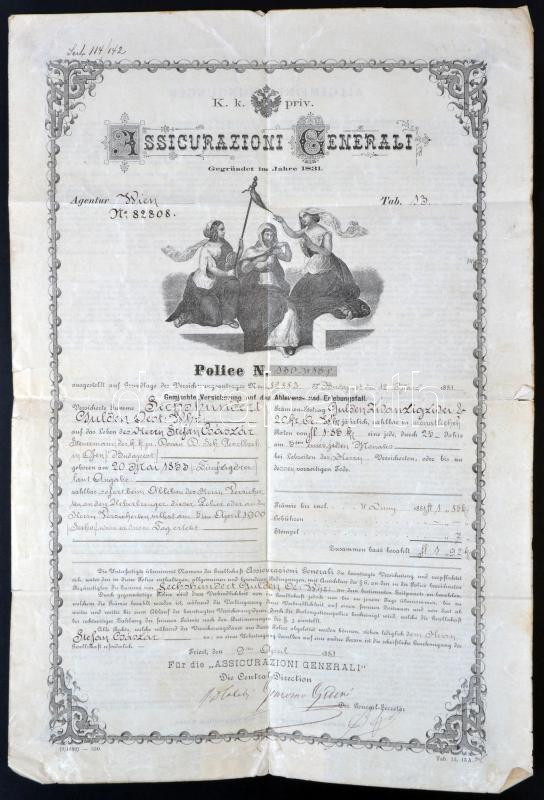 1881. "Assicurazioni Generali" életbiztosítási kötvény T:IV