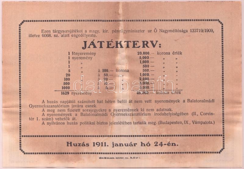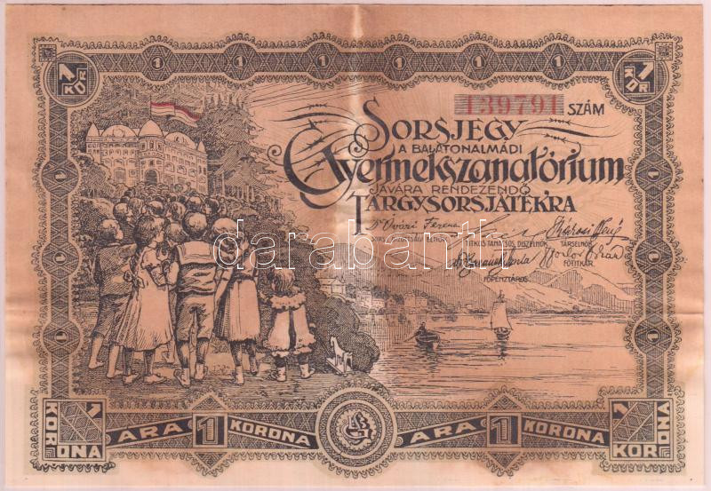 https://www.darabanth.com/en/210-Online-auction/210.0/Numismatics/Shares-and-Tickets~97/1911-1K-Sorsjegy-a-Balatonalmadi-Gyermekszanatoriumi-Targysorsjatekara-TIII-foltos~II864918
