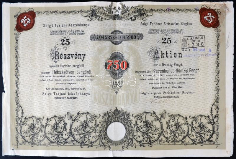 https://www.darabanth.com/en/210-Online-auction/210.0/Numismatics/Shares-and-Tickets~97/Budapest-1941-Salgo-Tarjani-Koszenbanya-Reszveny-Tarsulat-25-reszvenye-750P-rol-szelvC3~II867282