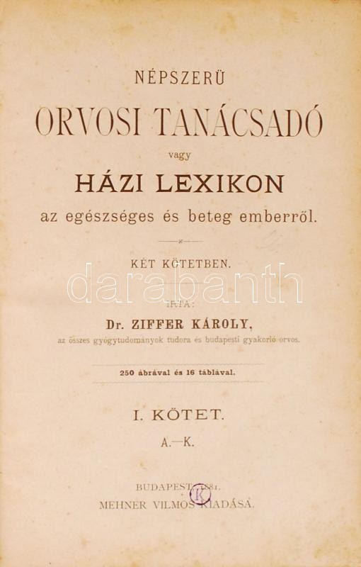 Dr. Ziffer Károly: Népszerű orvosi tanácsadó vagy házi lexikon az egés... https://www.darabanth.com/en/210-Online-auction/210.0/Other-collectibles/Books-Science-and-technology~600031/Dr-Ziffer-Karoly-Nepszeru-orvosi-tanacsado-vagy-hazi-lexikon-az-egeszseges-es-beteg-ember~II865177