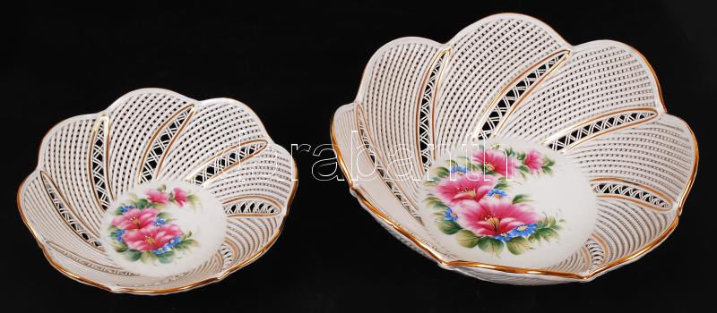 Transipor áttört tál (2db), kézzel festett, jelzett, hibátlan, d:17 és 22 cm, m:4 és 6 cm