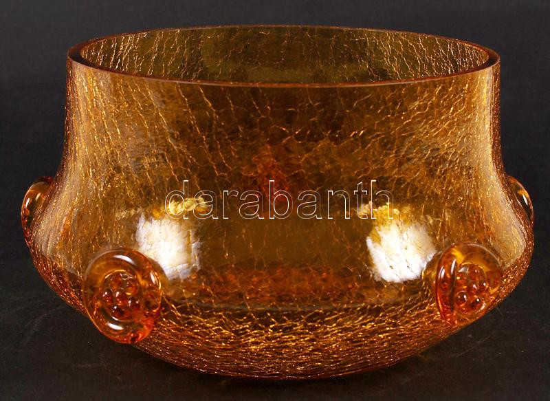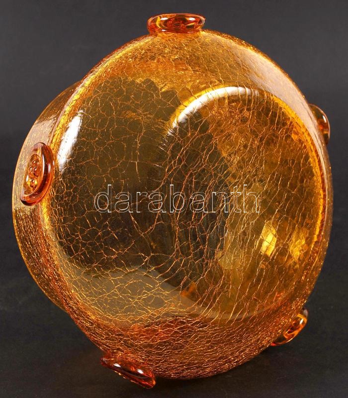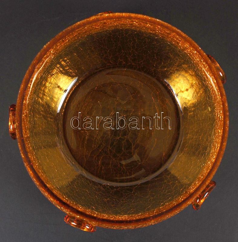 Mézsárga kraklé asztali üveg díszkínáló tál, hibátlan, m: 11 cm, d: 17...