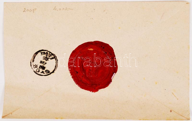 1883 Győr, levélboríték viaszpecséttel Zeichmeister Károly városi kapitánynak Győr megye főispánjától Hédervár körbélyegzővel.