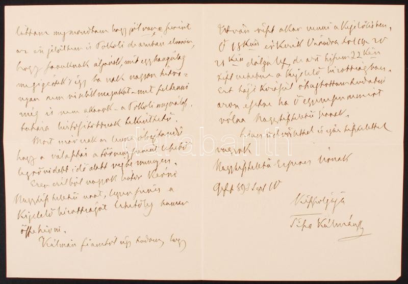 1893 gr. Tisza István miniszterelnök saját kézzel írt levele, Szél Kál...