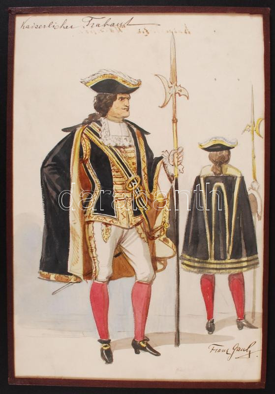 Franz Gaul (1837-1906): Császári darabant testőr. Jelzett. Akvarell, ü...