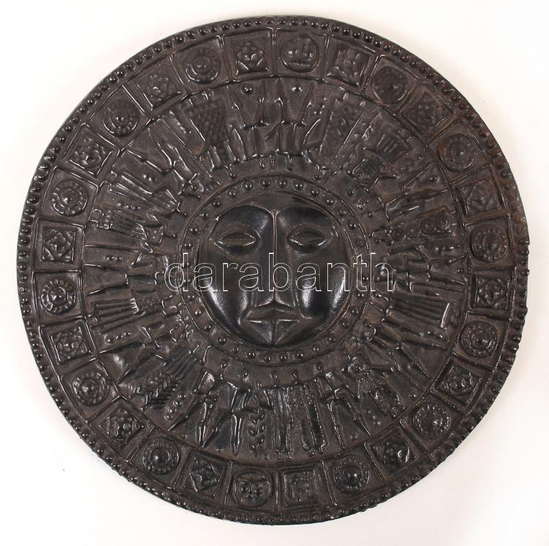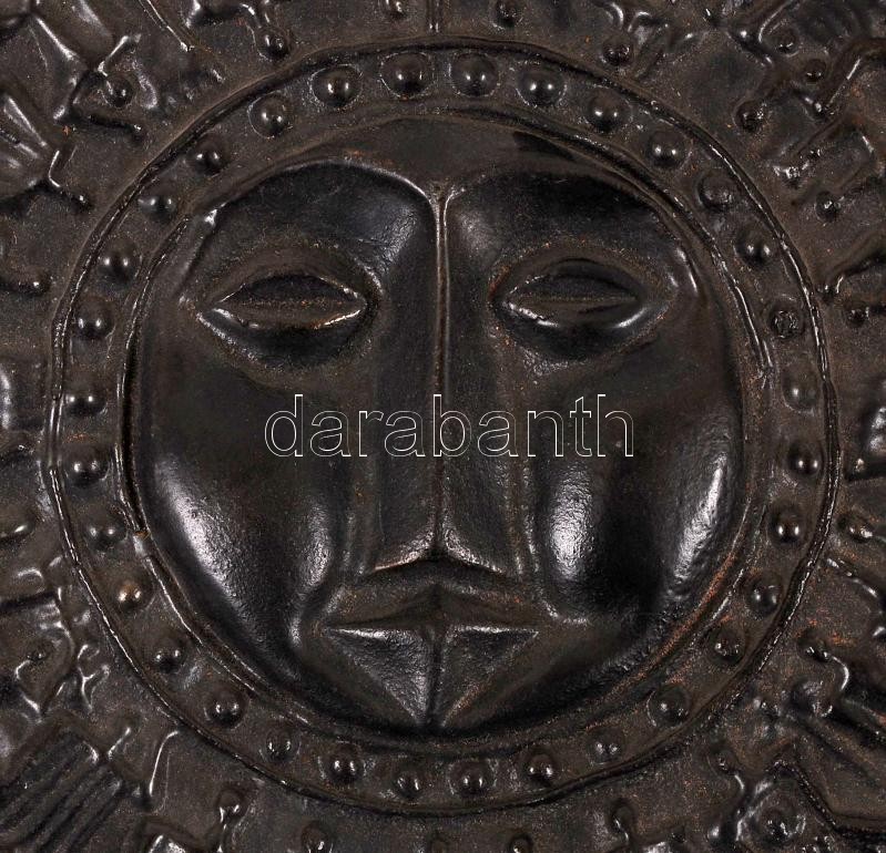 Festett nagyméretű vas plakett, nap szimbólummal, d:25 cm