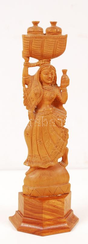 Indiai kosárhordó asszony, szantálfa szobor, m: 26 cm