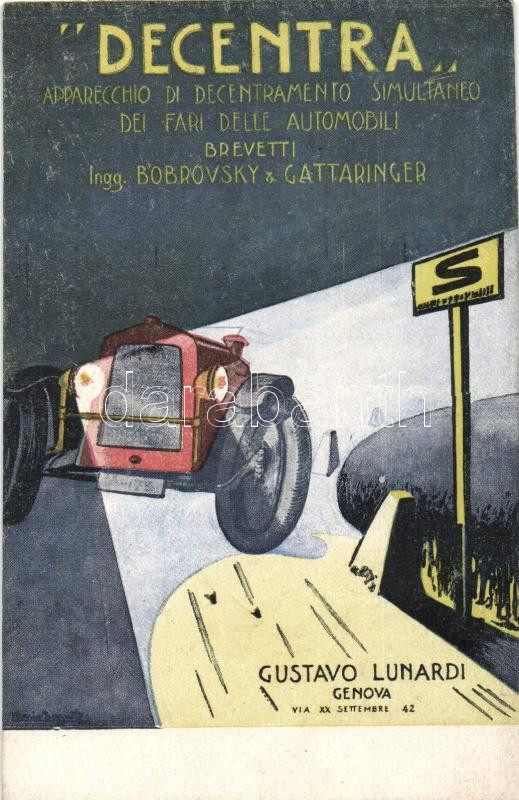 'Decentra' Gustavo Lunardi's automobile supplies, Italian advertisement, artist signed