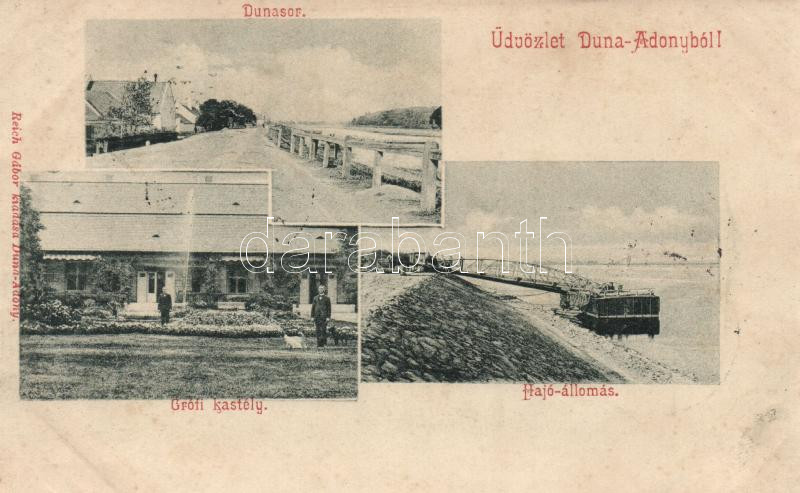Adony, Duna-Adony; Dunasor, Grófi kastély, Hajóállomás, Reich Gábor kiadása (fl)