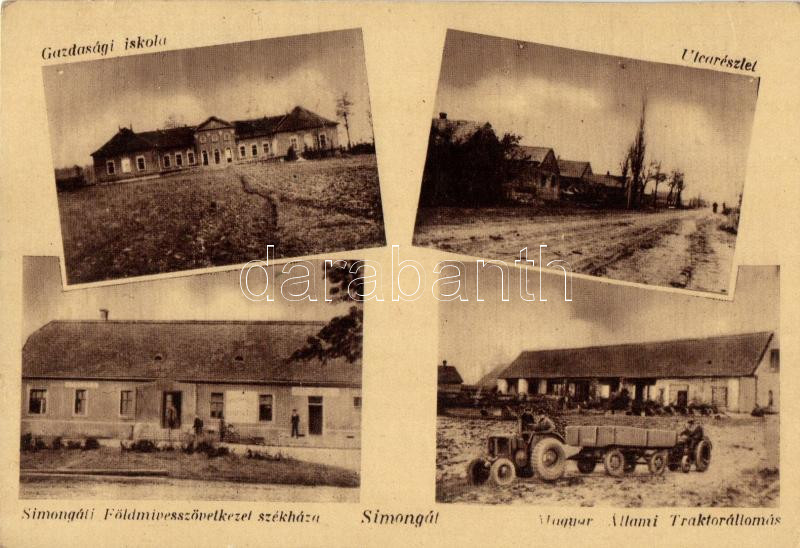 Simongát, Gazdasági iskola, utca, Földművesszövetkezet háza, Magyar Állami traktorállomás