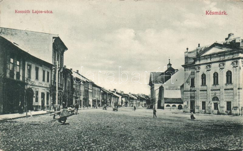 Késmárk, Kossuth Lajos utca, H. Donáth Hotel-Késmark, Schmidt R. kiadása / street, hotel (EK)