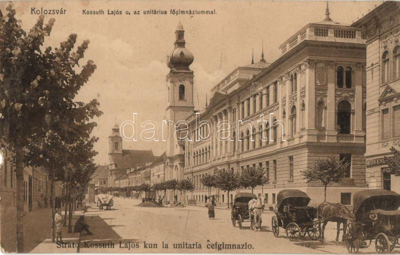 https://www.darabanth.com/en/210-Online-auction/210.0/Postcards/Transylvania~6/Kolozsvar-Kossuth-Lajos-utca-Unitarius-fogimnazium-Stief-street-grammar-school-b~II862107