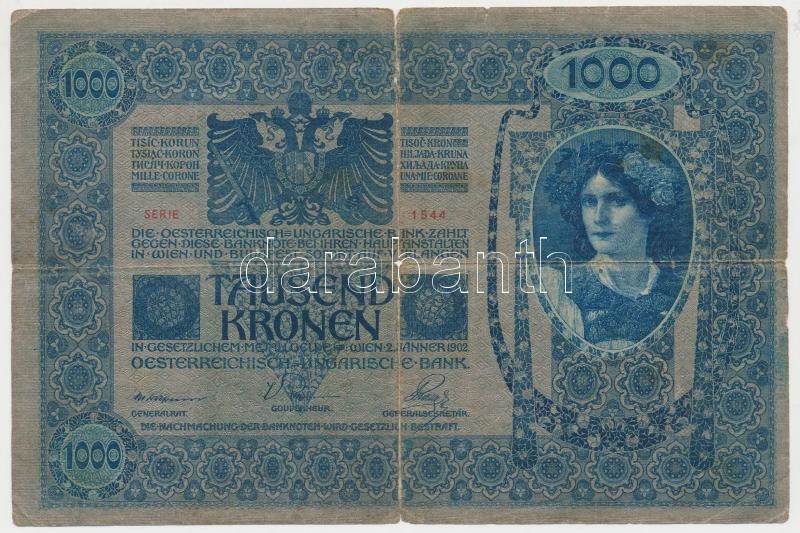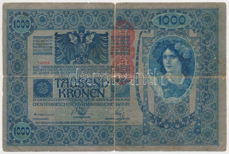 https://www.darabanth.com/en/211-Online-auction/211.0/Numismatics/Hungarian-Banknotes~600007/1902-1000K-mindket-oldal-nemet-Deutschosterreich-felulnyomassal-plus-Osztrak-Magyar-Bank-1922~II871823