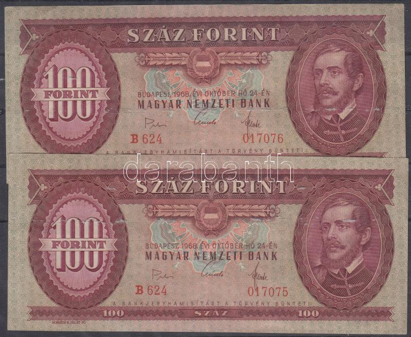 https://www.darabanth.com/en/211-Online-auction/211.0/Numismatics/Hungarian-Banknotes~600007/1968-100Ft-2x-sorszamkovetok-TII~II876530