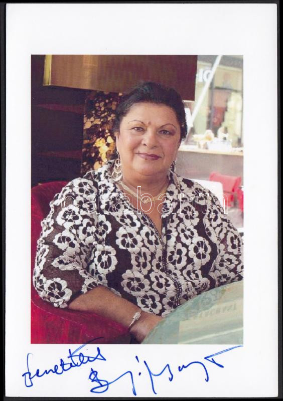 Bangó Margit aláírása az őt ábrázoló fotón