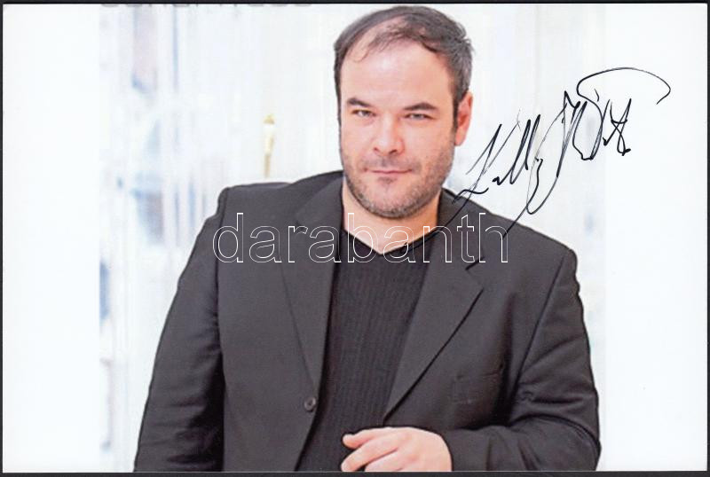 Kálloy Molnár Péter aláírása az őt ábrázoló fotón