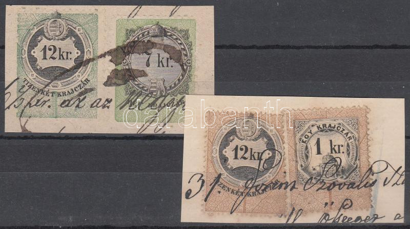 2 okmánydarab 12 Kr+7 Kr, valamint 12 Kr+1 Kr okmánybélyeggel