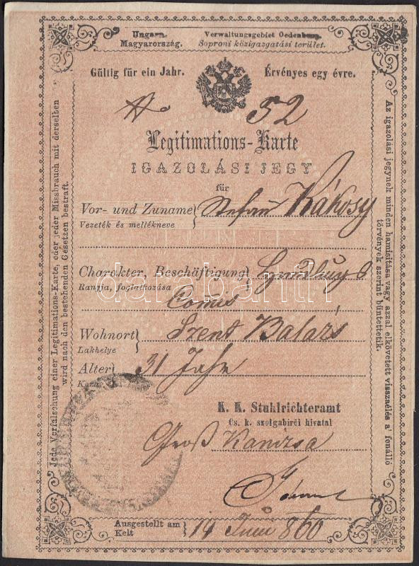 https://www.darabanth.com/en/211-Online-auction/211.0/Other-collectibles/Documents~400319/1860-Igazolasi-jegy-72kr-okmanybelyeggel~II872991