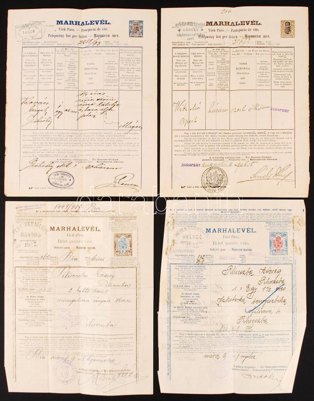 1890-1918 4 db okmánybélyeggel ellátott marhalevél