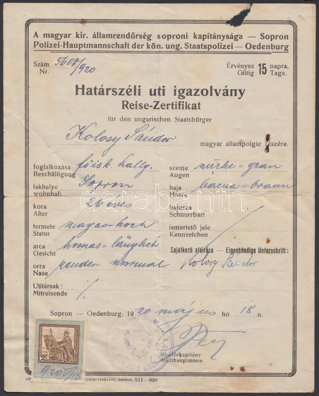 https://www.darabanth.com/en/211-Online-auction/211.0/Other-collectibles/Documents~400319/1920-Hatarszeli-utiigazolvany-hatarkeruletbeli-lakosok-reszere-fenykeppel-Osztrak-hatar-~II874391