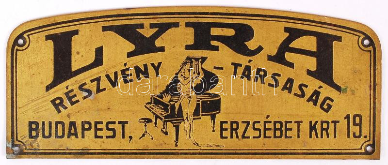 cca 1920 Lyra Részvény Társaság Budapest zongoraszalon fém táblája