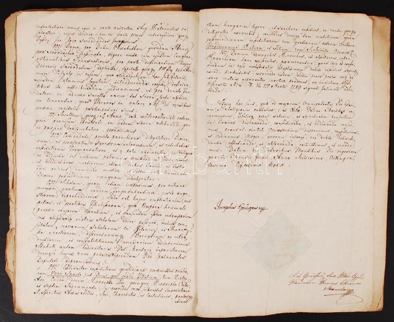 Description: 1829 A felvidéki Óhegy falu (Vetera Montanae) zarándokhely plébániájának kánoni látogatásáról készült jegyzőkönyv. kb 70 oldalon, benne az egyházközség részletes leírásával. Laton nyelven. A vizitáló vezetők aláírásával.