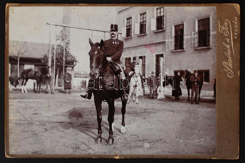 1905 Kassa, Lovas katona, keményhátú fotó, 16x11 cm