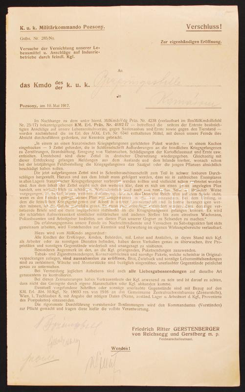 1916 Élelmiszer gazdálkodással kapcsolatos hadi parancs / Military ord...