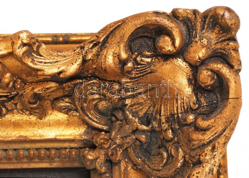 Heyer Artúr (1872-1931): Cica az ágyon. Olaj, vászon, jelzett, sérült antik keretben, 55×70 cm