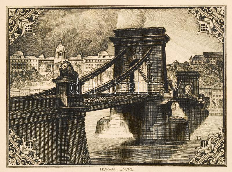 Horváth Endre (1896-1954) bankjegy- és bélyegtervező grafikusművész: Lánchíd. rézkarc 14x11 cm
