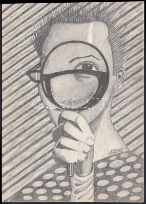 Kormos Balázs (1976-): Nagyitó. Ceruza, papír, jelzett, 27×19 cm