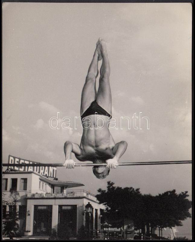 cca 1960-1970 Mutatvány a strandon, a kép hátoldalán egy sikertelen él...