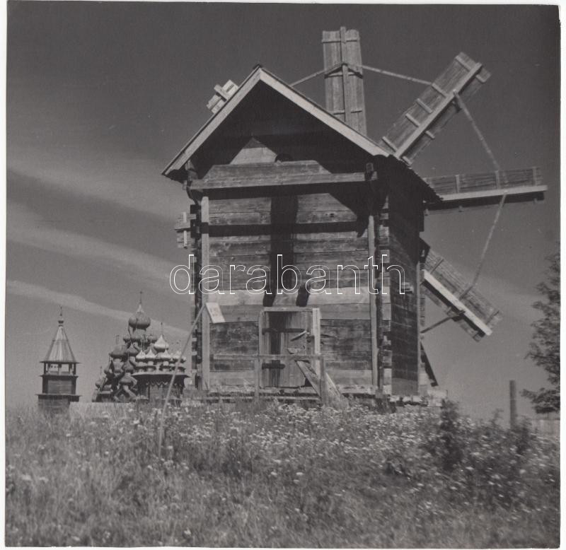 cca 1980 Wesolowski Piotr: Tájkép Kizsiről, fából készült orosz szélma...