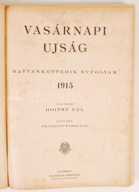 https://www.darabanth.com/en/211-Online-auction/211.0/Other-collectibles/Printed-Materials~400330/1915-Vasarnapi-Ujsag-Szerk-Hoitsy-Pal-1-fel-evfolyama-bekotve-Festett-egeszvaszon-ko~II835981