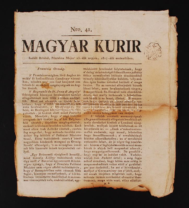 https://www.darabanth.com/en/211-Online-auction/211.0/Other-collectibles/Printed-Materials~400330/1917-Magyar-Kurir-41-szam-majus-23-Ujsagszignettaval-es-egesnyommal~II873308