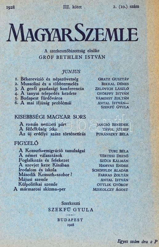 1928 Magyar Szemle 5 db száma (márc., máj., jún., aug., dec.), a szerk... https://www.darabanth.com/en/211-Online-auction/211.0/Other-collectibles/Printed-Materials~400330/1928-Magyar-Szemle-5-db-szama-marc-maj-jun-aug-dec-a-szerkesztobizottsag-elnoke-g~II870965