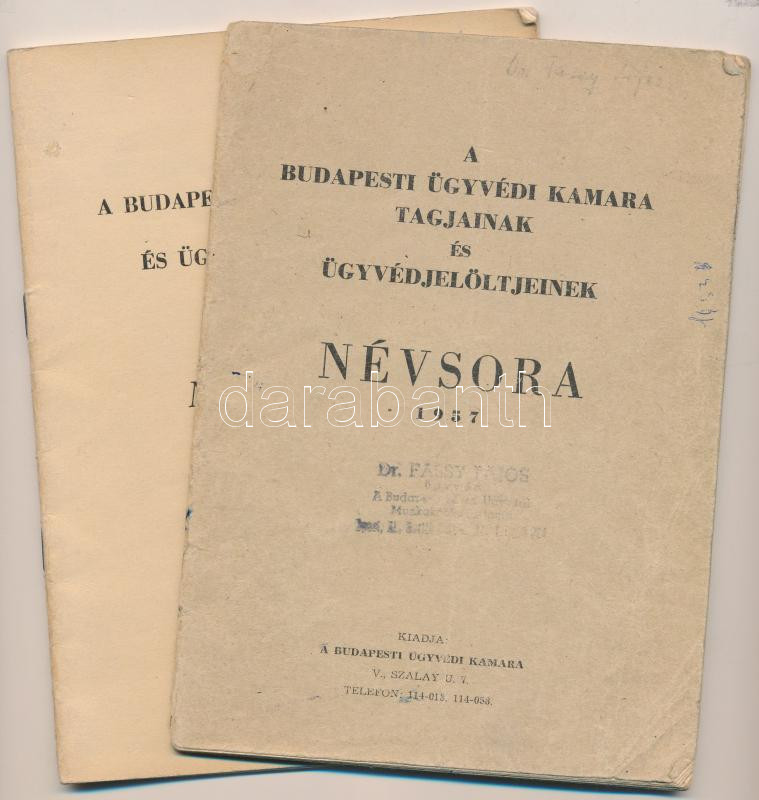 https://www.darabanth.com/en/211-Online-auction/211.0/Other-collectibles/Printed-Materials~400330/A-budapesti-ugyvedi-kamara-tagjainak-es-ugyvedjeloltjeinek-nevsora-1957-es-1968-evbol~II860194