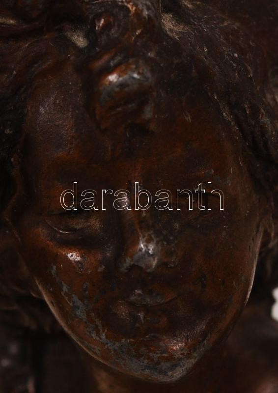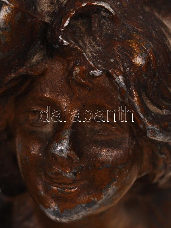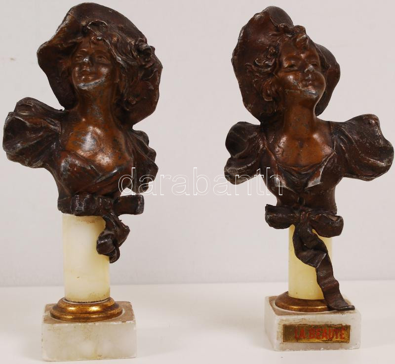 Festett spiáter kalapos szoborpár alabástrom talpazaton, m: 16 cm