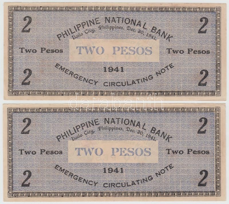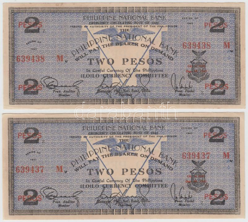 Fülöp-szigetek/Iloilo Currency Committee 1941. 2P (2x) sorszámkövetők ...